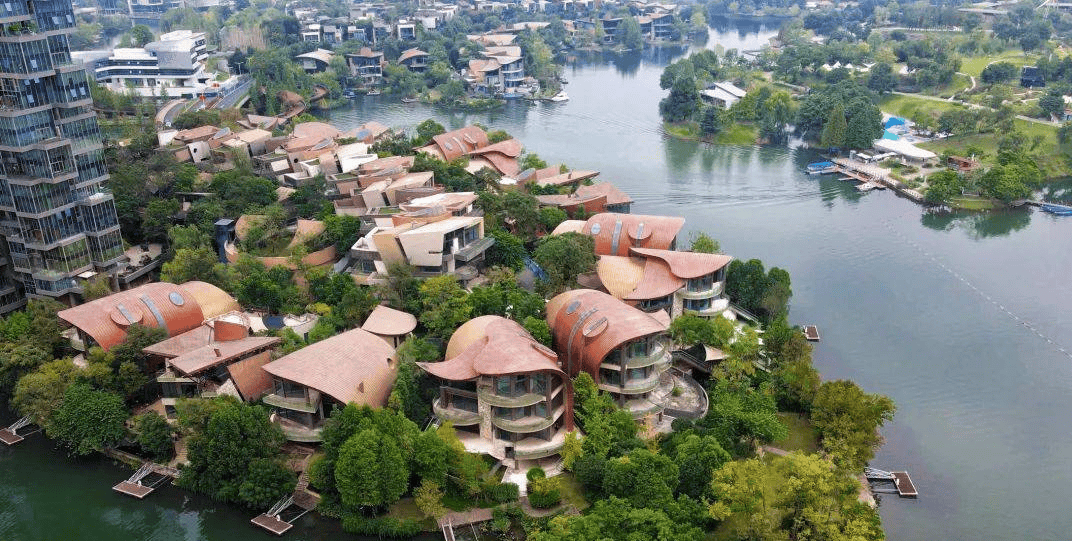 3. 黑蝶贝- 科技生态别墅22栋625-1146㎡的精拆别墅,700万㎡的规划建建面积展示了前瞻性的开辟。被从题公园环抱,户户配备私家船埠。27个高层组团中,立异玻璃舷梯设想,做为万华集团2009年启动的天府新区首个生态示范项目,