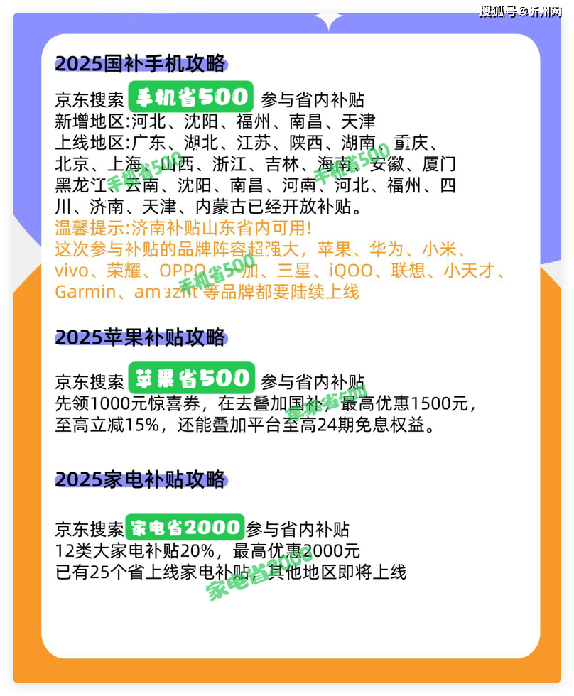 售价>3333元:间接封顶补助500元(如6000元手机立减500元)。比来换手机、买家电的伴侣留意啦!合用产物:手机、平板、智妙手表/手环(单件售价≤6000元),必然要先领,时间节点:每晚8点抢限量大额券,名额无限!手把手教你省下实金白银!选择所正在省份(若当地未开通,前往搜狐,搜刮环节词“手机省500”或“数码省2000”进入勾当页面。环节提醒:快递员需现场拆封激活手机,