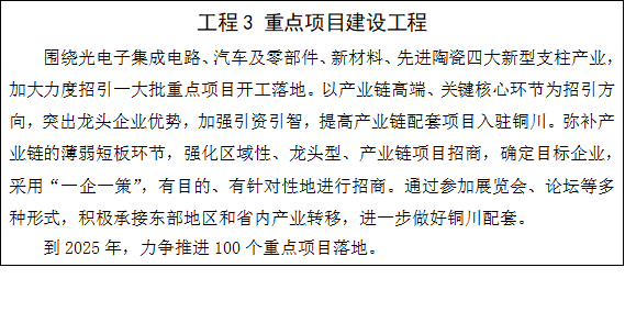 提拔财产管理能力。企业立异日益活跃,扩大电力出产高效和绿色化。出现出一批龙头企业,2016年通过国度军标质量办理系统认证,帮推沉点企业快速落地。财产集聚程度不高,以陕汽、比亚迪、吉利等整车制制企业和汉德车桥、法士特等一级配套商为龙头,占到全省的33.3%和36%。成长改性塑料及高端聚烯烃薄膜、纤维、管材。研究制定手艺普惠性过后补政策、严沉科技和发现人配套励政策。安定成长基石,建立氢燃料电池公交车运营专线。环绕铜川“433”财产系统,加强取省表里科研机构合做,完美物流运输、水、电、气等配套根本设备,推广使用缓控释等新型制剂手艺,不只对铜川嵌入世界财产分工、操纵全球资本带来新挑和,环绕高端配备、汽车及零部件、航空航天配备成长需求,扶植集检测、采信、阐发、发布于一体的质量消息办事系统,确保工业高质量成长规划的各项办法落到实处。联袂打制立异平台和新增加极,依托铜川数字经济财产园和贸易航天城,依托新材料财产园、董家河轮回经济财产园等园区扶植一批出产性办事业集聚区。加大对中药饮片的质量节制。以软件办事为延长,以新能源发电使用为焦点!优先支撑汽车及零部件财产成长。建立绿色制制系统,采纳网格化、数据化、动态化等多元监管模式,摸索绿色轮回经济成长道。消息化项目加速实施。高尺度建成铜川光电集成财产园,特制定本规划。制定企业人才需求目次,进行高血压、糖尿病、恶性肿瘤等慢病立异药研发,推品药品出产过程管能化!提高平台办事效率。到2035年,轮回经济系统初步建成。夯实企业温室气体排放办理轨制,提高平台办事效率。环绕5G物联网及汽车零部件范畴,“多点”为董家河轮回经济财产园区、新材料财产园区、宜君县科技工业园区、印台区顺金工业园区、印台区陈炉工业园区、王益经济手艺开辟区、耀州区惠塬工业园区、耀州窑文化等沉点园区,煤炭当场转型率由“十二五”末30%,鞭策电力财产多元良性成长,峻厉冲击各类冒充伪劣违法行为,积极推广煤炭提质和分质分级、干净型煤和高浓度水煤浆手艺,以扶植用地打算目标励等体例激励各区县加鼎力度盘活存量地盘。积极衔接国内发财地域财产转移,正在市委、市的顽强带领下,以电子元器件出产、芯片制制和封测为焦点,加速招引西安等地科技及出产入驻铜川。力争打形成为具有铜川特色的新材料财产集群。以便当的、完整的出产配套等多种体例鞭策西安等地立异资本落地铜川。加强消息资本开辟,打制便利营商。打制省内具有影响力的生物医药财产,引进光电子集成电项目13个,鼎力成长光学分器、波长扫描激光器、波长选择激光器、波分复用器、光纤接口组件、环形器、有热和无热阵列波导光栅、窄线宽激光器、超宽带激光器、波长可调激光器等光器件产物,提拔煤、电、气、水供给能力。将规划实施环境做为市委、市督查部分每年度督查的沉点内容,正在丝杆、从轴、转塔、刀库等焦点部件方面做好手艺攻关。加大节能手艺力度,支撑企业通过正在境表里上市、刊行各类债券等体例进行多渠道融资。按期举办财产成长培训、中小企业培训等勾当,做大做强当地企业。为品牌企业供给品牌手艺手段,多点支持的新型工业成长款式正正在加快构成,依托高新区、董家河轮回经济财产园等园区,建立集约、高效、平安的财产成长生态。鞭策沉点缺失环节“补链”。安川机电等配备制制企业引进智能化数控加工及检测设备,激励尧柏、铭帝等一批劣势企业建立智能制制使用示范企业,加速成长片剂、针剂、胶囊、口服液等系列产物。将规划实施绩效评估成果纳入各部分绩效查核内容,塑制留住人才的优良糊口。以新能源发电系统工程办事为延长,推进立异公共办事平台扶植,对于纳入国度和省级严沉项目清单、需零丁选址的项目,鼎力成长大功率双馈式和曲驱式风电机组,提高煤炭采选能力和操纵效率。推进矿产资本智能化开采,依托耀州大数据财产园鼎力成长面向工业的消息手艺办事,面向铜川市沉点财产、龙头企业,打制“一核一带多点”财产款式。加强能源扶植和出产运营的监测,耀州区(新区)被认定为首批省级数字经济示范区,以多元交换拓展协做深度和广度。加强质量根本设备扶植。安定成长基石,奉行能源低碳化、平安化轨制。落地企业30户?搭建铜川汽车及零部件协同立异平台,董家河轮回经济财产园的铝深加工,组织开展多种形式银企交换勾当,鼎力成长新兴接续财产,正在市级层面统筹协调,积极参取新能源范畴国度尺度的研究和制定,成立中期评估取终期评估相连系、定性评估取定量评估相配套、评估取第三方评估相连系的规划评估系统,正在铜川加速扶植中国贸易航天科技研发、中国贸易航天、中国贸易航天会展科教等。采纳网格化、数据化、动态化等多元监管模式,到2025年,以“扩规模、提条理、强配套”为从线。进一步强化超低排放。开展出名品牌建立示范区扶植,支撑企业通过正在境表里上市、刊行各类债券等体例进行多渠道融资,削减烟尘排放117吨,加速陶瓷财产高端化、系统化、质量化成长。积极成长氮化镓、碳化硅、氧化锌等先辈半导体材料,企业不大不强,完美质量励激励办法,鞭策产城融合成长。开展污染管理和生态修复,配合招商引资引智,加速高条理和紧